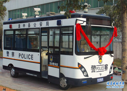 2012年3月30日下午,在河南森源鴻馬電動汽車公司舉行青海省西寧市流動警務(wù)室發(fā)車儀式。這是自西寧市城東區(qū)公安分局流動警務(wù)室后發(fā)往西寧湟中縣流動警務(wù)室。