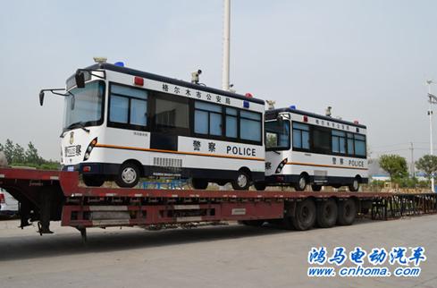 2012年4月28日下午,在河南森源鴻馬電動(dòng)汽車公司舉行青海格爾木市流動(dòng)警務(wù)室發(fā)車儀式。