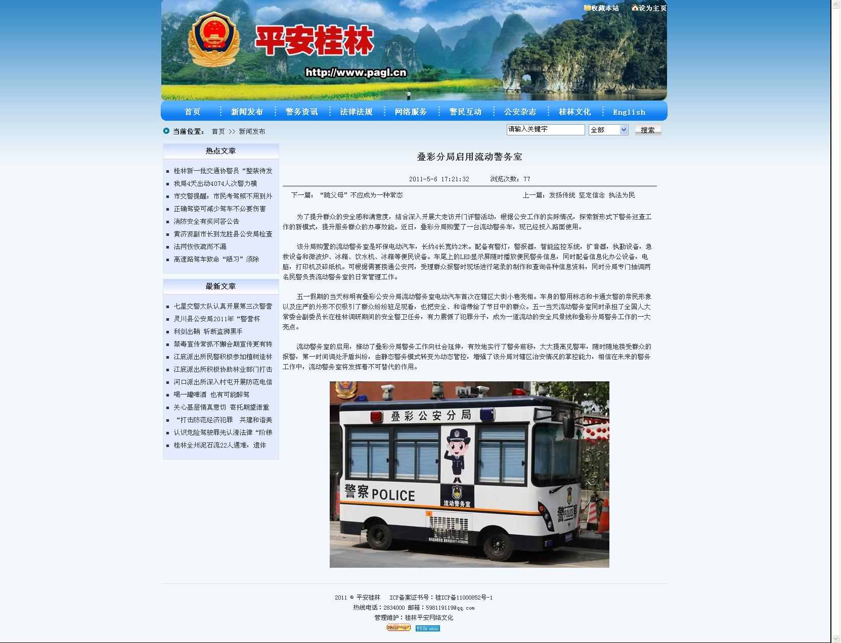 平安桂林新聞報(bào)道:疊彩分局啟用流動(dòng)警務(wù)室