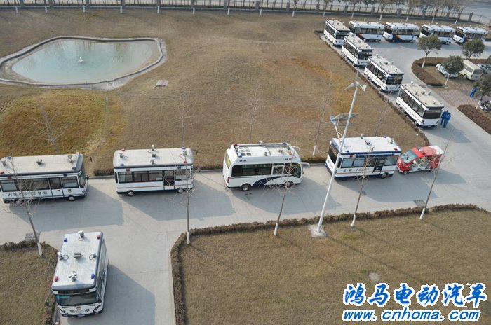 ![]() 鴻馬電動(dòng)汽車研發(fā)中心俯視圖 ![]() 電動(dòng)流動(dòng)警務(wù)室廣場(chǎng)一角 (攝影:張帥) |