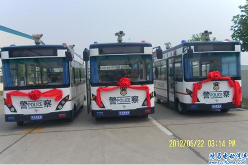 2012年6月22日下午,在河南森源鴻馬電動汽車公司舉行貴州甕安縣鴻馬移動警務(wù)室發(fā)車儀式。