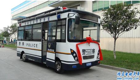 鴻馬移動(dòng)警務(wù)室銷(xiāo)售再傳捷報(bào),7月6日下午,1臺(tái)設(shè)備齊全的移動(dòng)交巡警警務(wù)室正式下線,在河南森源鴻馬電動(dòng)汽車(chē)公司舉行發(fā)車(chē)儀式。