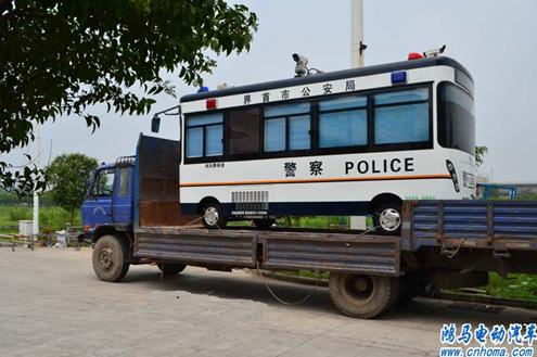 2012年8月6日下午,在河南森源鴻馬電動汽車公司舉行市安徽界首市鴻馬移動警務(wù)室發(fā)車儀式。