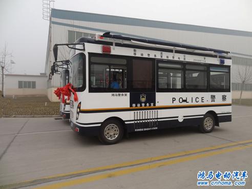 1月10日下午,在河南森源鴻馬電動汽車公司舉行廣東佛山鴻馬流動警務(wù)室發(fā)車儀式。