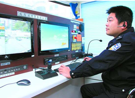 說(shuō)話間,王隊(duì)長(zhǎng)已開(kāi)始向記者進(jìn)行現(xiàn)場(chǎng)演示。王隊(duì)長(zhǎng)按下操作平臺(tái)上第4個(gè)畫面,顯示東廈北路北面的道路,拉近監(jiān)控器焦距,便清晰看到遠(yuǎn)處一輛汽車的車牌!斑@輛車的攝像頭能夠拉伸多倍焦距,能快速自動(dòng)對(duì)焦,而且還能進(jìn)行視像存儲(chǔ)。”王隊(duì)長(zhǎng)說(shuō),值守警務(wù)車的民警通過(guò)監(jiān)控?cái)z像頭能夠及時(shí)發(fā)現(xiàn)路面上發(fā)生的緊急突發(fā)事件,進(jìn)行治安維護(hù)。