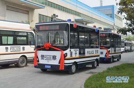 4月24日下午,在河南森源鴻馬電動汽車公司舉行江西九江星子縣移動警務(wù)室發(fā)車儀式。