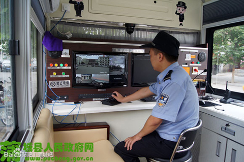 “車上裝有多個監(jiān)控攝像頭,其中2個是全方位監(jiān)控!逼殉强h公安局巡特警大隊民警劉虎說,鴻馬移動警務(wù)室的投入,使常態(tài)警務(wù)變成了移動警務(wù),加強了社會治安的管控力!6輛移動警務(wù)車采取定點巡控模式,與街面其他巡邏警力相互配合,‘零距離’‘零空間’打擊犯罪,對犯罪分子起到了震懾作用!