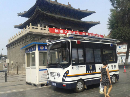 山西太原:鴻馬“移動警務(wù)室”上路執(zhí)勤  城隍廟安保再添新利器