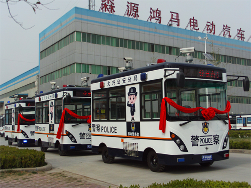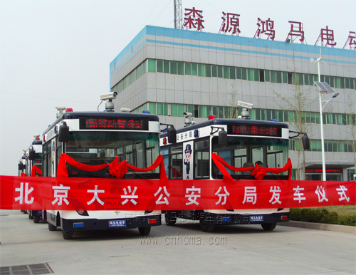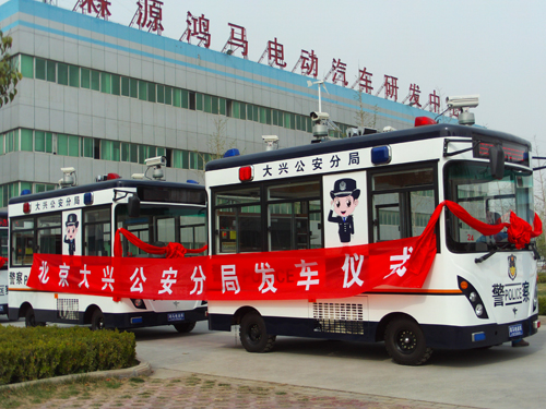 4月8日 18:00時,北京大興公安分局流動警務(wù)室、電動流動警務(wù)室、的發(fā)車儀式,在森源鴻馬電動車廣場舉行。鴻馬電動汽車總經(jīng)理馬總等領(lǐng)導(dǎo)全體參加。