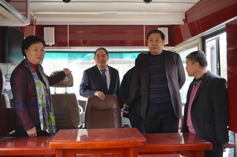 馬總(左二)陪同企聯(lián)會領(lǐng)導(dǎo)參觀移動法庭