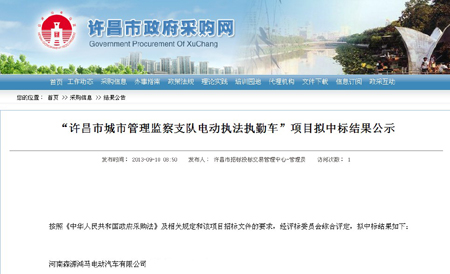 鴻馬電動巡邏車許昌中標(biāo)公告