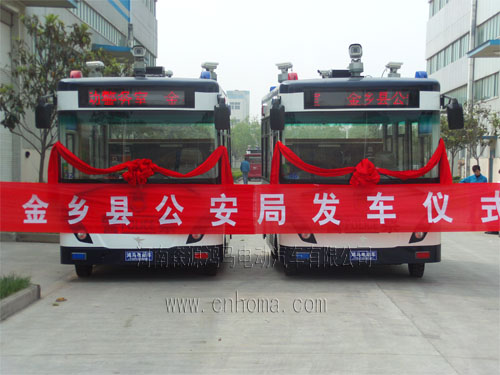 山東濟(jì)寧市金鄉(xiāng)縣公安局流動警務(wù)室發(fā)車儀式鴻馬流動警務(wù)室。鴻馬電動汽車的電動流動警務(wù)室、流動警務(wù)室、電動汽車、電動警亭是根據(jù)國家重點(diǎn)鼓勵(lì)的環(huán)保節(jié)能新能源電動汽車和市場現(xiàn)實(shí)需求,經(jīng)過精心設(shè)計(jì)出來,面市以來熱銷全國,BTV電視臺報(bào)道:“流動警務(wù)站 服務(wù)老百姓”、“ 流動巡邏警務(wù)站駐守街頭服務(wù)百姓”深圳電視臺報(bào)道:“深圳 流動警務(wù)室 新年上路保市民平安”
