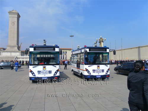 鴻馬流動警務(wù)室亮相北京天安門,高智能純電動流動警務(wù)室擁有高配置電腦公安系統(tǒng)專用信息傳輸系統(tǒng),內(nèi)室配置齊全高檔能更好服務(wù)市民。