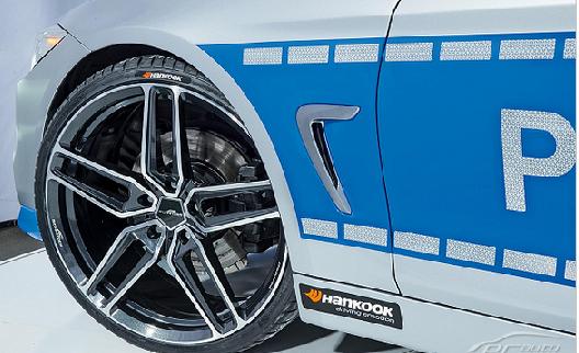 ACS4 2.8i Coupe以428i為基礎(chǔ)改造而成,更彪悍的是,此次參展的ACS4 2.8i Coupe采用的是德國(guó)警車(chē)涂裝!該車(chē)外觀增加了前下擾流器、后下分離器、尾翼等部件,搭配上運(yùn)動(dòng)化的懸掛系統(tǒng),還有AC Schnitzer自家出品的9.0J×21英寸的Type VIII鍛造鋁輪轂與245/30R21尺寸的韓泰Ventus S1evo高性能性能胎。作為警車(chē)當(dāng)然少不了的是車(chē)頂?shù)乃{(lán)色警示燈。這活脫脫的就是《極品飛車(chē)》里死命撞你的變態(tài)警車(chē)用車(chē)。