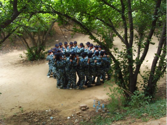 抵達基地第一項是站30分鐘軍姿:站軍姿看起來很簡單,要做到像“軍人神對不可侵犯”還是比較難的。雖然沒有軍人站的好,但我們也很棒,我們當中有一個伙伴她流淚了,但是她站在那里沒有動,一直堅持下來,她知道在站的不是她一個人,是一個團隊。