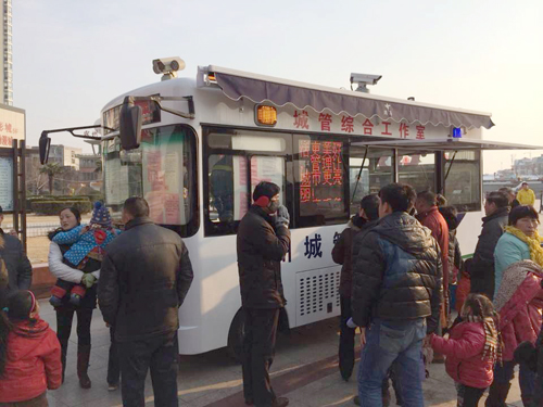 2月12日上午,宿州市城管執(zhí)法人員依托他們的新裝備——可移動城管執(zhí)法車在宿州二中廣場執(zhí)勤,為宿州市民辦理免費自行車卡,此舉受到了宿州市民的一致好評。