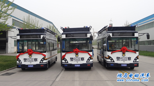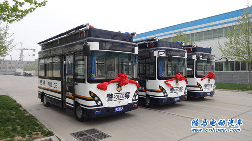 4月10下午,在河南森源鴻馬電動(dòng)汽車有限公司舉行了吉林省白山市公安局的10臺(tái)鴻馬移動(dòng)警務(wù)室發(fā)車儀式。