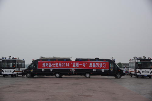 周口淮陽縣多部門聯(lián)合舉行反暴恐綜合演練  鴻馬移動警務(wù)室顯威力