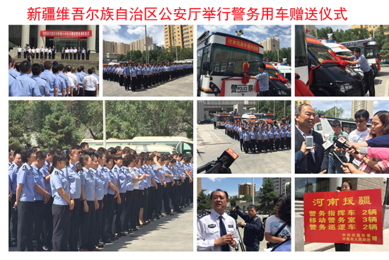 許昌市委書記王樹山代表市委、市政府向新疆公安機關(guān)贈送了7臺由河南森源鴻馬公司研發(fā)生產(chǎn)的公安部指定特種警務(wù)車輛(其中包括移動警務(wù)室3輛、警務(wù)指揮車2輛、警務(wù)巡邏車2輛),希望在提升當(dāng)?shù)鼐醚b備水平、維護(hù)社會和諧穩(wěn)定中發(fā)揮作用,受到了新疆干部群眾的歡迎。
