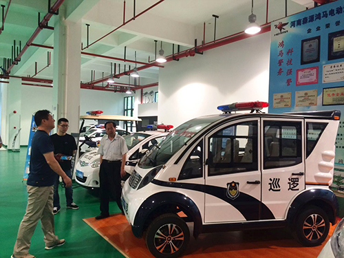 新疆公安廳魏登君政委一行領導在公安部裝備采購中心處參觀調(diào)研鴻馬電動巡邏車