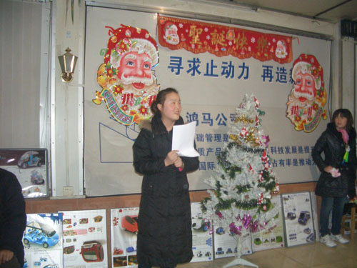 昨天,為了讓鴻馬電動汽車的職工們勞逸結(jié)合,特舉辦了一場:鴻馬電動車圣誕聯(lián)歡會“,會上各個部分的人才紛紛上臺表演,笑話、歌曲、戲曲、熱舞等無一不讓地下的觀眾報以熱烈的掌聲。