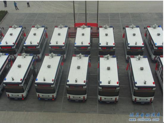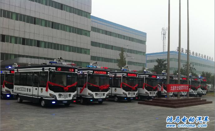 10月10,16臺(tái)鴻馬流動(dòng)警務(wù)室整齊的排放在森源鴻馬電動(dòng)汽車研發(fā)中心的廣場(chǎng)內(nèi),等待它們的是即將到大連市公安局執(zhí)行巡邏任務(wù)。
