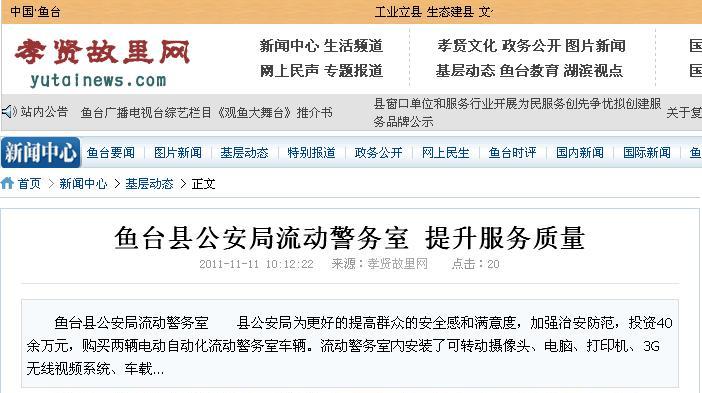 中國魚臺報道:魚臺縣公安局鴻馬流動警務室 提升服務質量