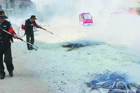 上午10時(shí)30分許,宋寨南街東段一塊空地發(fā)生“火災(zāi)”,火勢(shì)眼看波及周圍的民房。很快,兩臺(tái)鴻馬牌紅色小型電動(dòng)消防車鳴著警報(bào)從西邊趕至現(xiàn)場(chǎng),鴻馬電動(dòng)消防車上配置的那些齊全的消防工具,使12名義務(wù)消防員僅用3分鐘就將火勢(shì)控制住。