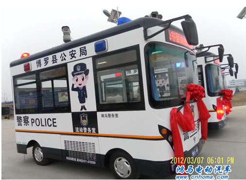 2012年3月7日下午,在鴻馬電動(dòng)汽車長(zhǎng)葛生產(chǎn)基地舉行了廣東惠州惠州博羅縣移動(dòng)警務(wù)室發(fā)車儀式。這是繼廣東惠州公安局“流動(dòng)警務(wù)室”、 中山市西苑社區(qū)派出所移動(dòng)警務(wù)室后發(fā)往博羅縣移動(dòng)警務(wù)室。