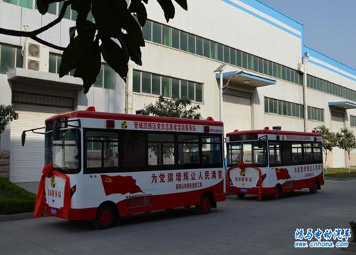 2012年4月6日上午,在河南森源鴻馬電動汽車公司內(nèi)舉行鄭州市管城回族區(qū)黨員志愿者流動服務(wù)站發(fā)車儀式。