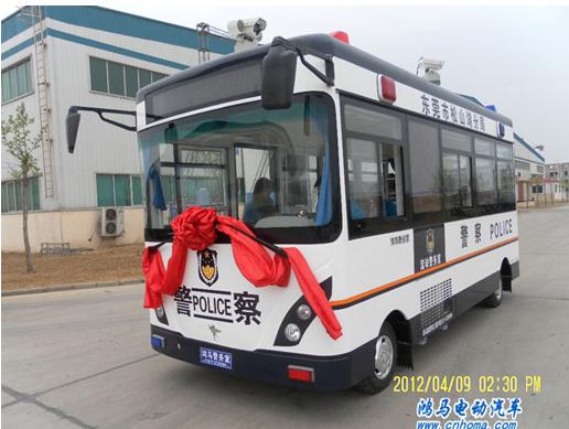 2012年4月9日下午,在河南森源鴻馬電動汽車公司長葛生產(chǎn)基地舉行東莞市松山湖警用便民移動警務(wù)室首發(fā)儀式。