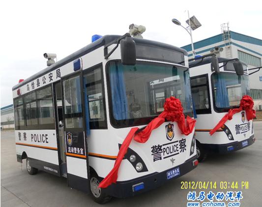 2012年4月14日下午,在河南森源鴻馬電動汽車公司長葛生產(chǎn)基地舉行新疆烏恰縣公安局警用便民移動警務(wù)室發(fā)車儀式。