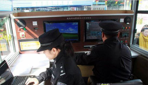 可選加裝配件 金屬探測(cè)儀、搜索燈、二代身份證驗(yàn)證機(jī)、停車示意牌、反光錐筒、警戒帶、大容量滅火器等警用裝備;民警配備了武器、手持電臺(tái)、PDA手機(jī)、執(zhí)法記錄儀、單警裝備及其它必要的制服性、驅(qū)散性警械;警務(wù)室還備有飲水機(jī)、急救箱、打氣筒、旅游地圖、公交線路手冊(cè)和常用政策法規(guī)、公安業(yè)務(wù)辦理程序宣傳單等便民設(shè)施。