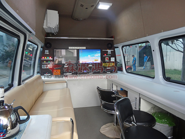 工信部產(chǎn)品目錄車輛 采用全順改裝而成,車頂安裝紅藍(lán)爆閃警燈,車身兩側(cè)安裝紅藍(lán)頻閃燈,車內(nèi)配有先進(jìn)和完備的現(xiàn)場辦公系統(tǒng)、警報系統(tǒng)、實時監(jiān)控系統(tǒng)、廣播系統(tǒng)、照明及攝像系統(tǒng)等。整車按功能分為駕駛艙和工作艙兩部分,駕駛艙與工作艙隔開。通過車載設(shè)備對現(xiàn)場音頻、視頻數(shù)據(jù)進(jìn)行采集、備份,與后方指揮中心建立實時通訊及信息傳遞,經(jīng)由該網(wǎng)絡(luò)實現(xiàn)視頻及遠(yuǎn)程指揮工作,廣泛應(yīng)用于公安、武警、法院、檢察院等執(zhí)法部門。