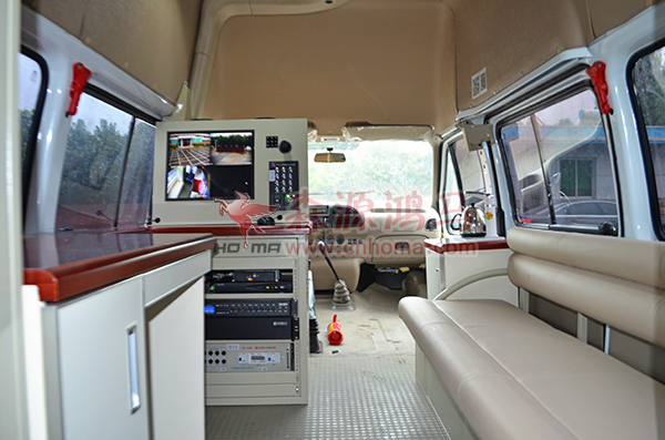 工信部產品目錄車輛 采用全順改裝而成,車頂安裝紅藍爆閃警燈,車身兩側安裝紅藍頻閃燈,車內配有先進和完備的現場辦公系統(tǒng)、警報系統(tǒng)、實時監(jiān)控系統(tǒng)、廣播系統(tǒng)、照明及攝像系統(tǒng)等。整車按功能分為駕駛艙和工作艙兩部分,駕駛艙與工作艙隔開。通過車載設備對現場音頻、視頻數據進行采集、備份,與后方指揮中心建立實時通訊及信息傳遞,經由該網絡實現視頻及遠程指揮工作,廣泛應用于公安、武警、法院、檢察院等執(zhí)法部門。